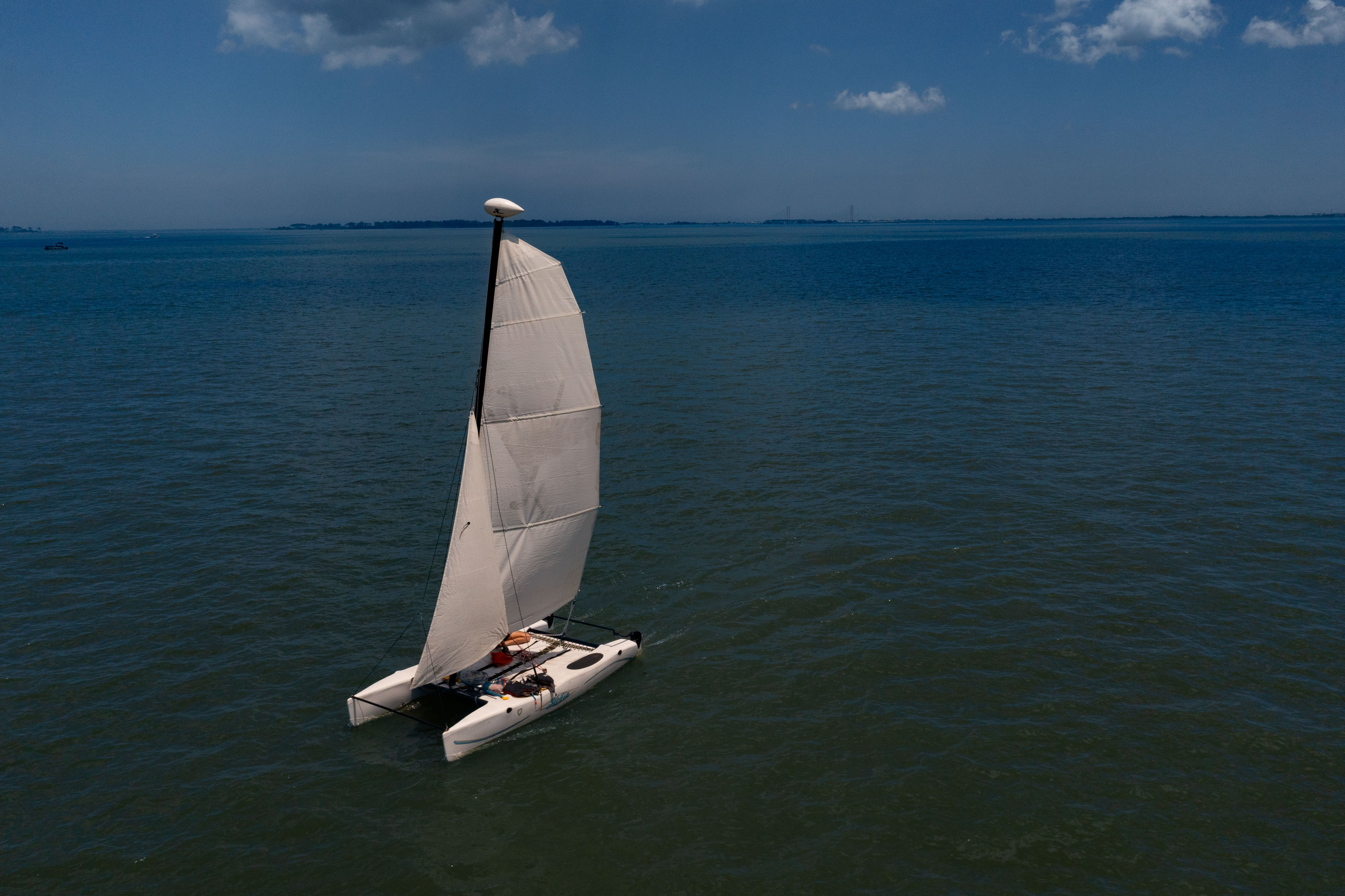 The Hobie Wave is the perfect sailboat for our coastal waters. It is a breeze to rig, super easy to sail, stable and forgiving, yet responsive. It’s a blast! This Hobie Wave comes with a rare jib for a little extra sail space and help with tacking.